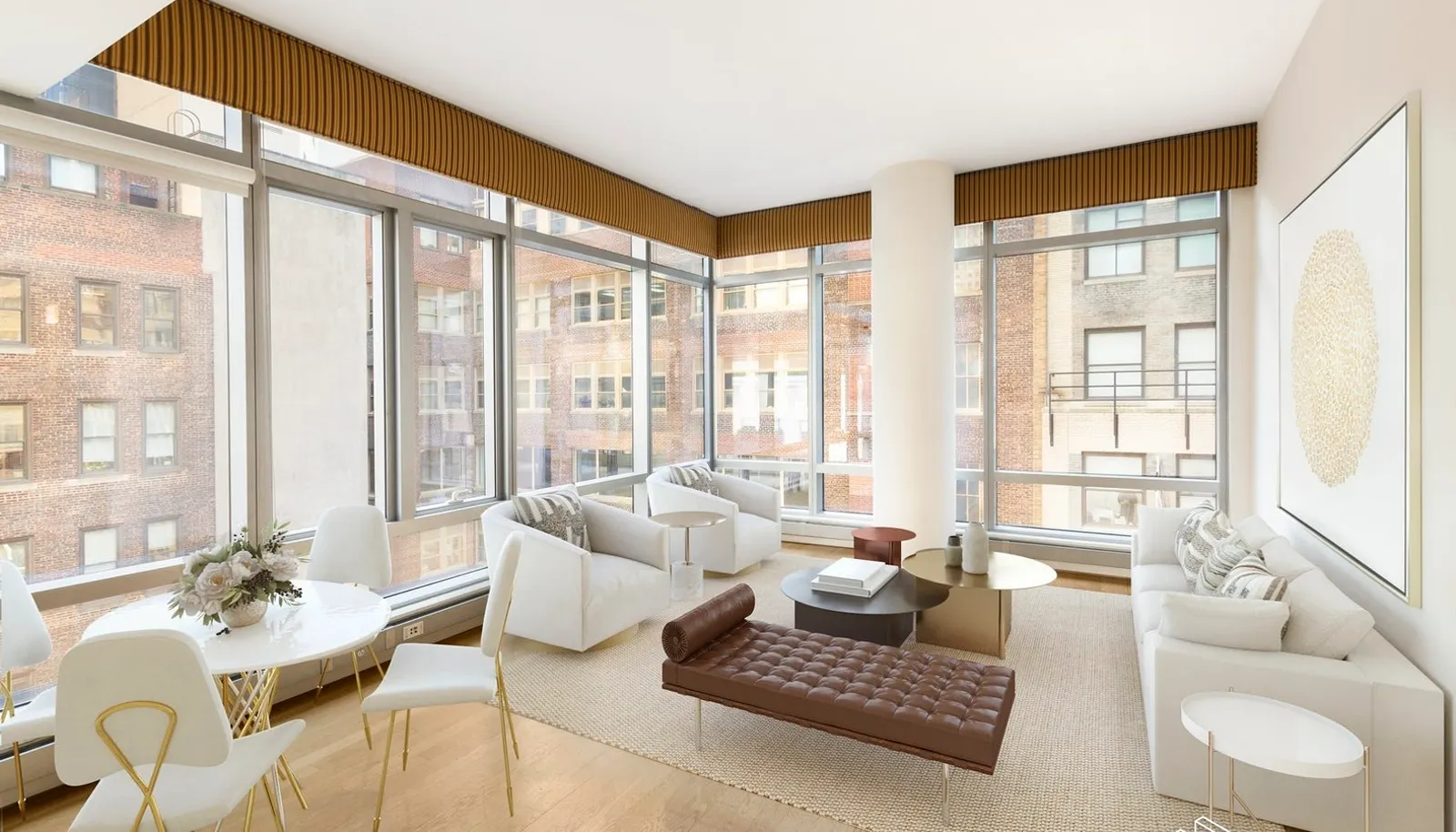 Furnished only- all brand new furniture. Apartment 12C is a charming corner one bedroom unit boasting floor to ceiling windows and beautiful...